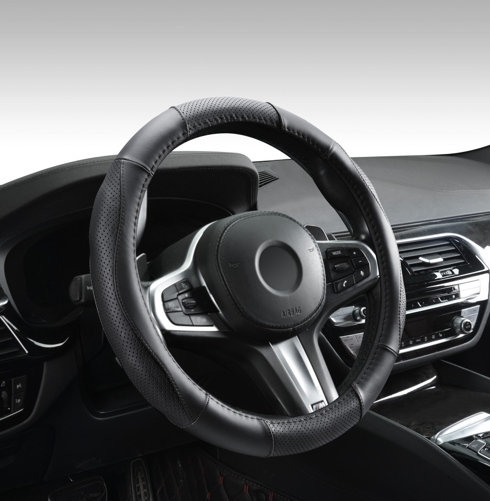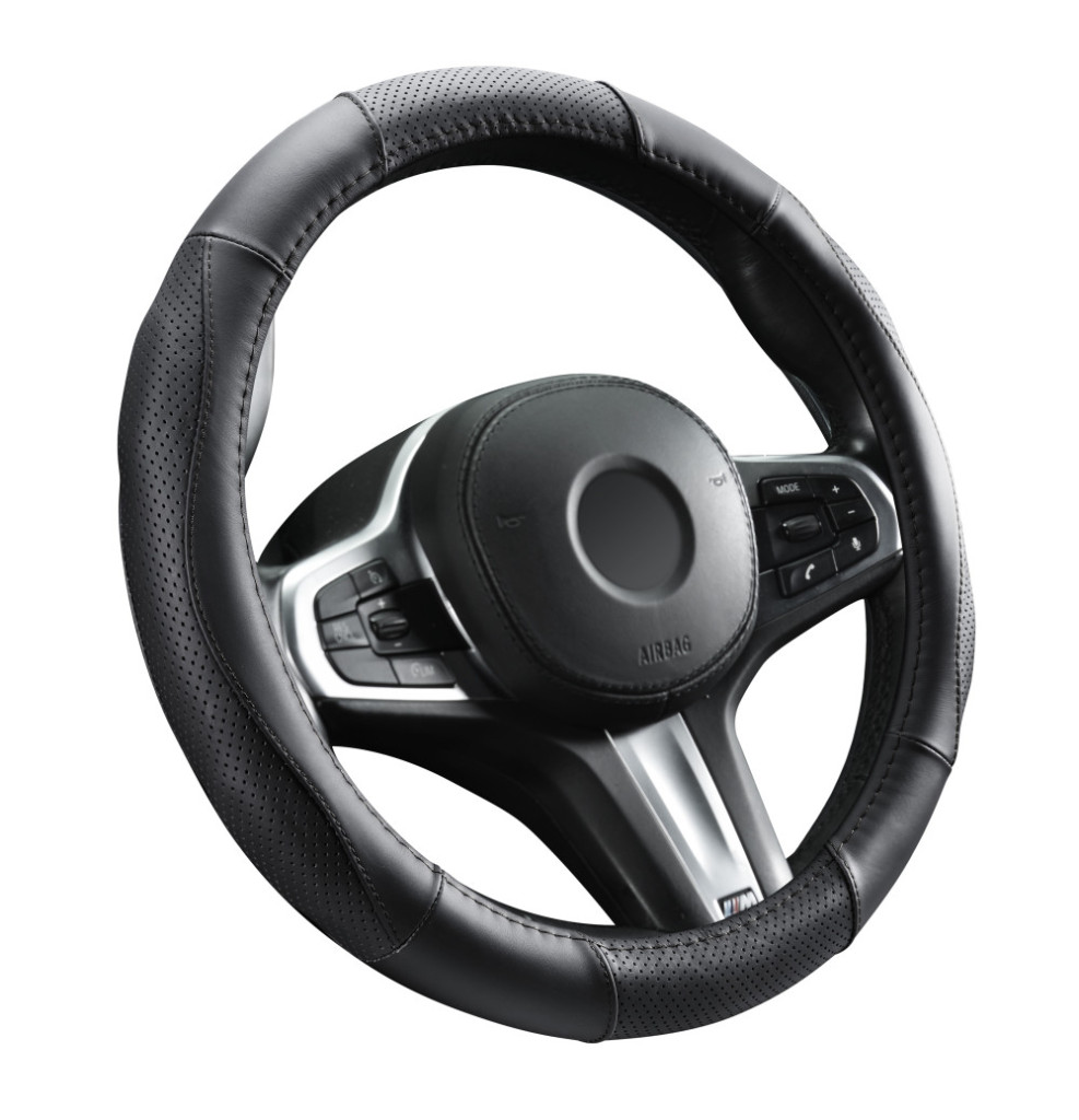 Valódi bőr kormányvédő szellőző lyukacsos mintával fekete színben
