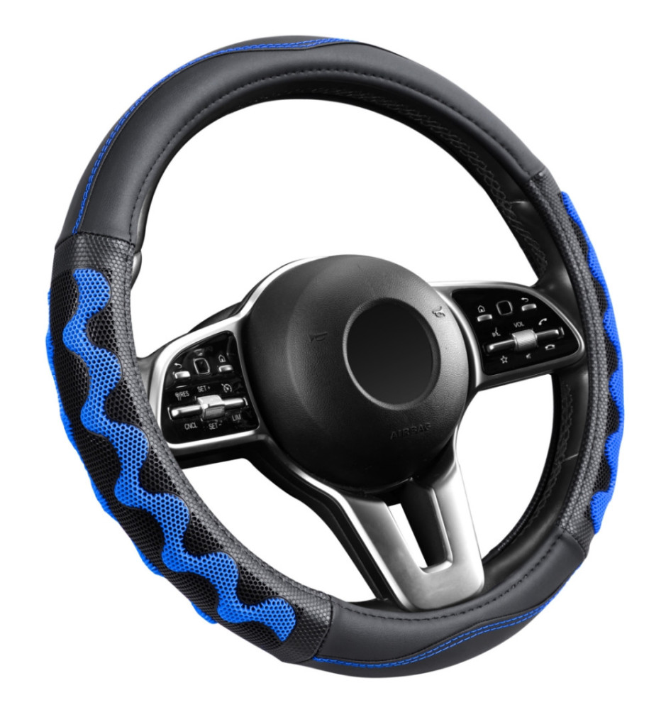 Műbőr kormányvédő 38cm fekete-kék 203-7BL