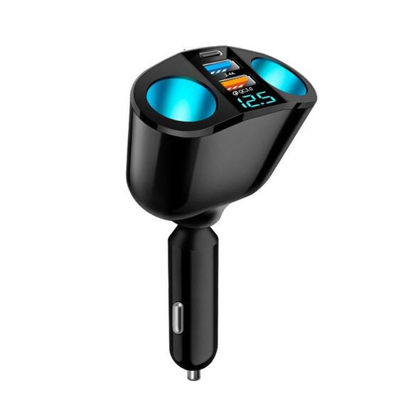 Prémium QC3024 QC3.0+2.4A autós töltő 2 USB porttal + 2 szivargyújtó + PD